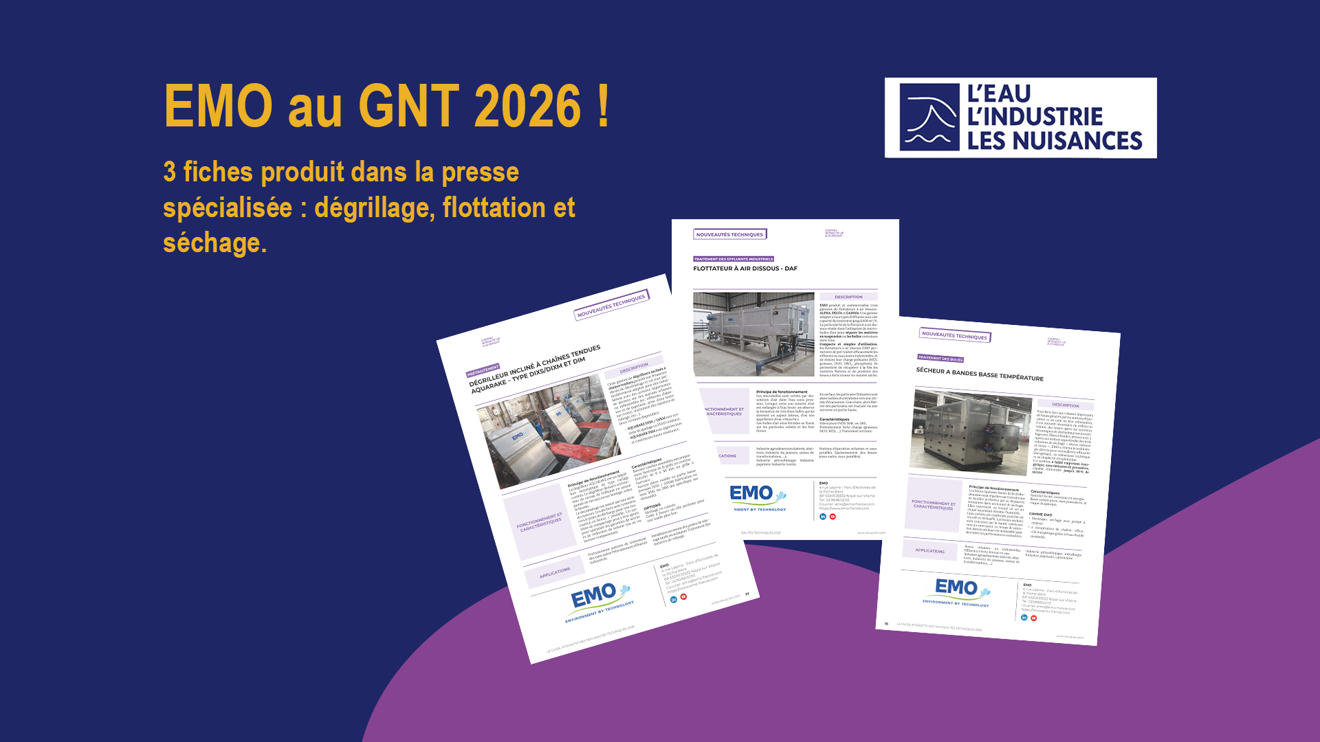 3 fiches produit dans la presse spécialisée : dégrillage, flottation et séchage.
