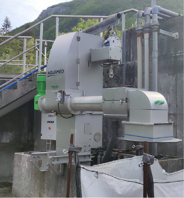 Le godet, chargé des déchets emprisonnés contre la grille va alors entamer sa remontée avec la mise en route en simultané de la vis compacteuse.